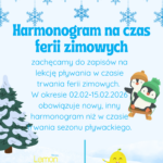 W związku z feriami zimowymi informujemy, że w terminie 02.02–15.02.2026 następuje przerwa w regularnych zajęciach nauki pływania.